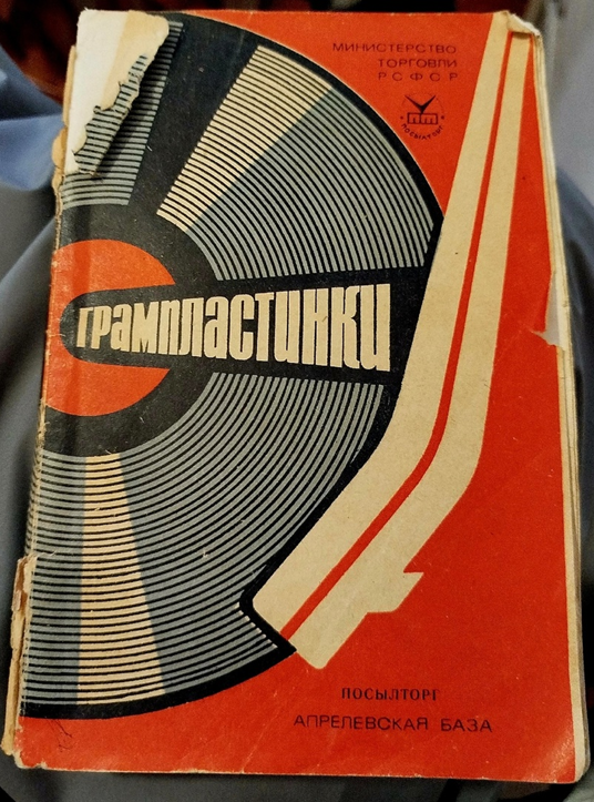 В Кирилло-Белозерском музее заповеднике, в коллекции фонда «Фото-фоно-видео документы» бережно хранятся 783 единицы грампластинок советского и зарубежного производства. Девяносто из них поступили в фонд музея благодаря давним друзьям и дарителям музея - семье Церковницких. Коллекция пластинок Церковницких удивляет своим разнообразием, открывая разносторонние увлечения их владельцев. Рассматривая их семейную коллекцию пластинок, невольно задаешься вопросом, каким образом она пополнялась? Промтоварные магазины провинциальных городков, таких, как Кириллов, в советское время не отличались разнообразием культтоваров, к которым относились виниловые пластинки. Ответ на этот вопрос был найден среди предметов, переданных по завещанию в музей, Т.В Церковницкой. Это брошюра – каталог «Грампластинки» Апрелевской базы Посылторга министерства торговли РСФСР (фото 1), а также почтовая коробка с бланком Посылторга, где указывается точный адрес Апрелевской базы: г. Апрелевка, Московской области, ул. Ленина.