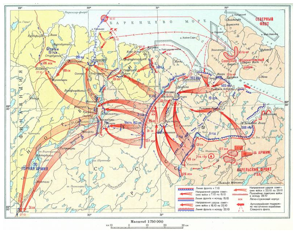 В апреле 1943 года Е. Н. Преображенский был назначен на должность начальника штаба Военно-Воздушных Сил Северного флота, а в июле ему было присвоено воинское звание генерал-майор авиации. Большинство аэродромов были расположены около базы флота – города Полярный. В составе Северного флота авиация участвовала в обороне побережья, полуострова Средний и Рыбачий, защите внутренних и внешних советских морских перевозок и конвоев союзников, охоте на морских коммуникациях противника, поддержке приморского фланга 14-й армии, поддержке тактических десантов, поддержке сухопутных войск и военно-морских сил в Петсамо-Киркенесской операции.