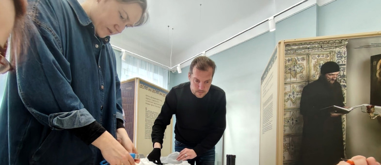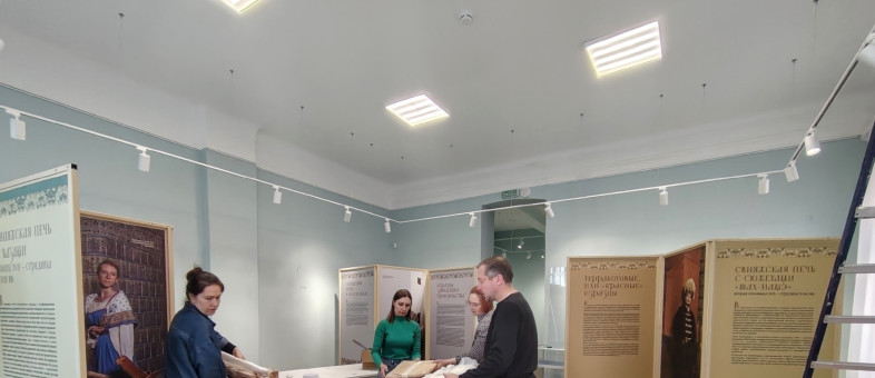 На вологодской площадке Кирилло-Белозерского музея-заповедника — в пространстве Мастерской Татьяны Чистяковой — идёт монтаж выставки «Свияжские печи в пёстрых изразцах: XVII-начала XX веков».