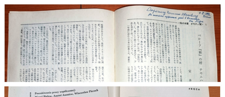 «Это, к примеру, журнал «Советская литература» на польском языке, где опубликованы главы из романа Белова «Год великого перелома», а также сборник, который вышел в Берлине в 1988 году, – рассказывает заведующий сектором хранения фондов музея-квартиры Белова Ксения Соколова. – Под одной обложкой немецкого издания представлены произведения нашего писателя Василия Белова, поэта, писателя, переводчика Владимира Набокова, а также австрийского пианиста, поэта и писателя Георга Крайслера и французской писательницы и журналистки Франсуазы Ксенакис.