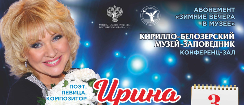 «Открытие «Зимних вечером в музее» состоится уже третьего декабря, – рассказывает руководитель культурных проектов Кирилло-Белозерского музея-заповедника Сергей Беляшов. – Старт программе в Кириллове даст сама Ирина Грибулина. Она впервые приедет на Вологодчину с творческим вечером.