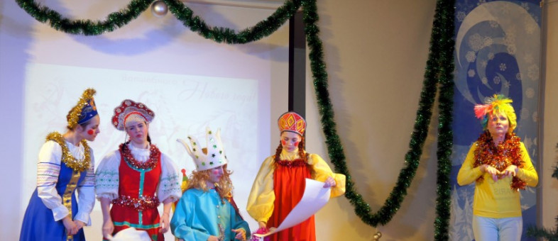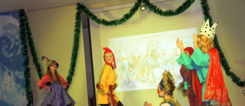 The children’s performance was based on Russian fairy tales. The Tsar, his daughter - the Princess Who Never Smiled or the Unsmiling Tsarevna, and her friends go and seek the Golden Cockerel stolen by Nightingale the Robber and Likho. The characters meet some marshy dwellers, the Bear named Masha, the Dragon Gorynovna and certainly Father Frost and Snow Maiden. According to the tradition of the Russian fairy tale, the kind characters defeat the evil ones and everything is concluded with a general feast.
