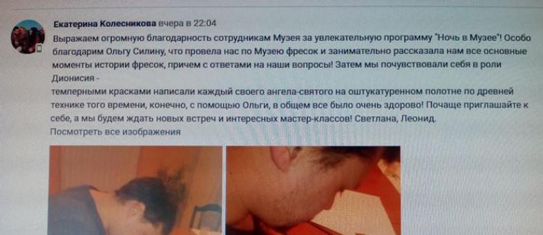The Museum of Dionisy’s Frescoes was also involved in this cultural event. It opened its doors for visitors in the evening for the sixth year running.