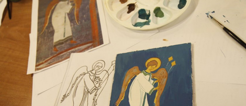 This museum lesson gives people a chance to make a small fresco following the principles, technological stages and artistic methods of the master of the turn of the 15th-16th centuries. Of course, it is impossible to reconstruct the fresco painting process completely; we have to keep certain conditionality in the choice of painting methods and materials. But as a result of this museum event, visitors learn in practice how Dionisy worked and create a souvenir about it. This time the museum guests painted an image of the angel from the credence altar of the Nativity of the Virgin Cathedral under the direction of O.V. Silina. She told them about symbolism of the angel’s attributes and artistic peculiarities of the image. During the action “Night of Arts”, the master-class “Apprentices of Dionisy” was delivered twice for two groups of visitors.
