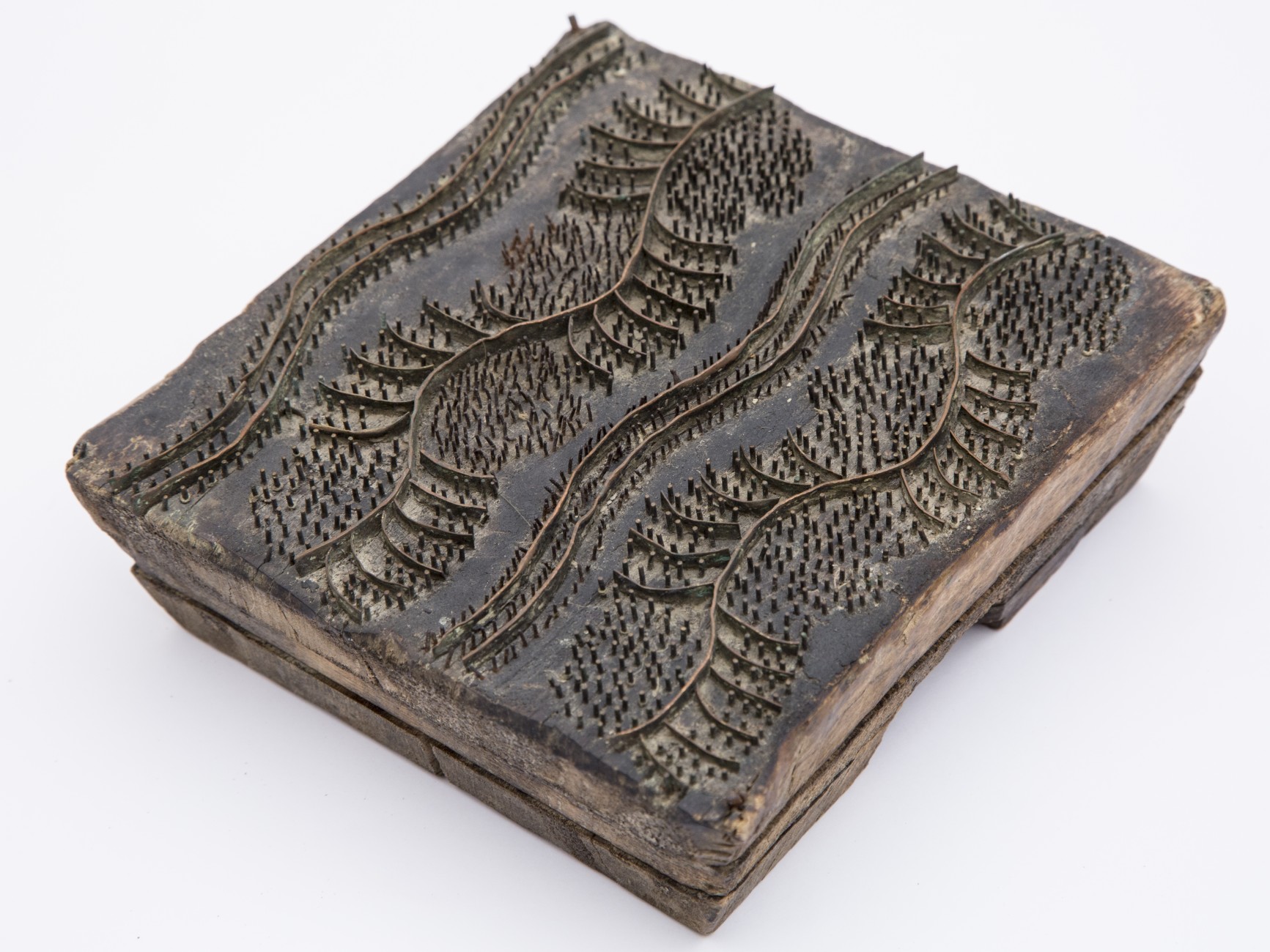 Музей Фресок Дионисия начал формировать свои фонды в 1993 году. За этот период в музей поступило более десяти тысяч предметов. Большую часть фондов составляют предметы прикладного искусства, быта и этнографии. Первые набойные доски в количестве 79 предметов появились в собрании Музея фресок Дионисия в 2006 году, в 2009 году музей приобрел еще 102 предмета. На сегодняшний день коллекция насчитывает 181 предмет. Ручная набойка по холсту – достаточно простой и эффектный способ украшения тканей, известный с давних времен. Если узорным ткачеством и вышивкой занимались в каждой крестьянской избе, то окрашиванием и набойкой холстов только мастера в некоторых крестьянских семьях. Количество крестьянских красилен в северных губерниях при этом было довольно значительным.