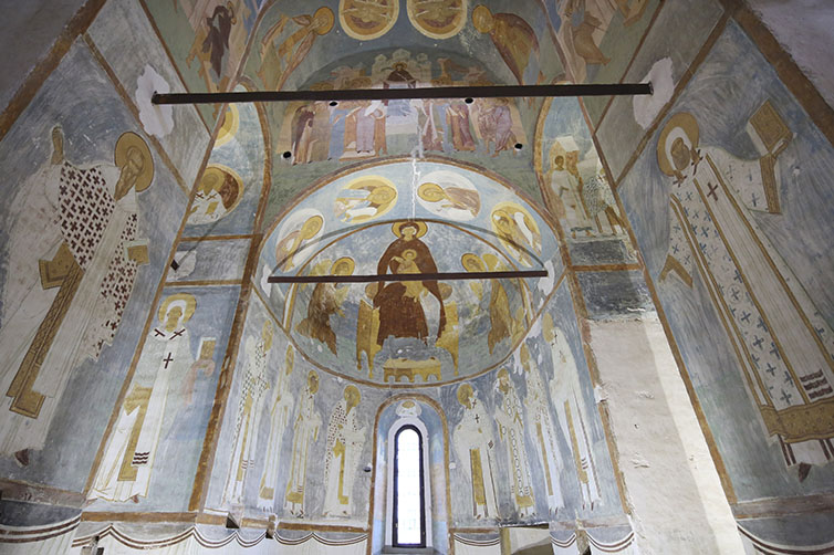 В раннехристианских постройках возвышенная часть центрального нефа храма, где располагался престол для совершения евхаристической жертвы, с III века стала отгораживаться барьером. Постепенно передвигаемая к востоку, со временем она образовала с апсидой единое пространство [2, с. 54], которое с IV века стало ограждаться с западной стороны алтарной преградой [5, с. 51]. Эта часть храма, завершенная сводом (конхой), издавна символизировала небо [6, с. 148].