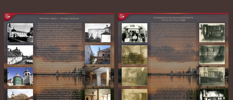 В 1924 году в стенах бывшего Кирилло-Белозерского монастыря был открыт Кирилловский музей – филиал Череповецкого окружного губернского музея. В 1926 году он был передан в ведение Главнауки Народного комиссариата просвещения и стал самостоятельным музеем. Первый директор-заведующий музеем Александр Александрович Холмовский занимался постановкой коллекций на учет, выявлением ценных предметов из имущества церквей, близлежащих монастырей и усадеб. В 1929 году в музее в помещениях Трапезной палаты открылась первая постоянная экспозиция. Состояла она из семи разделов и давала представление о колонизации края и истории монастыря. Основная экспозиция работала круглый год, а в летнее время для осмотра открывались еще несколько памятников.