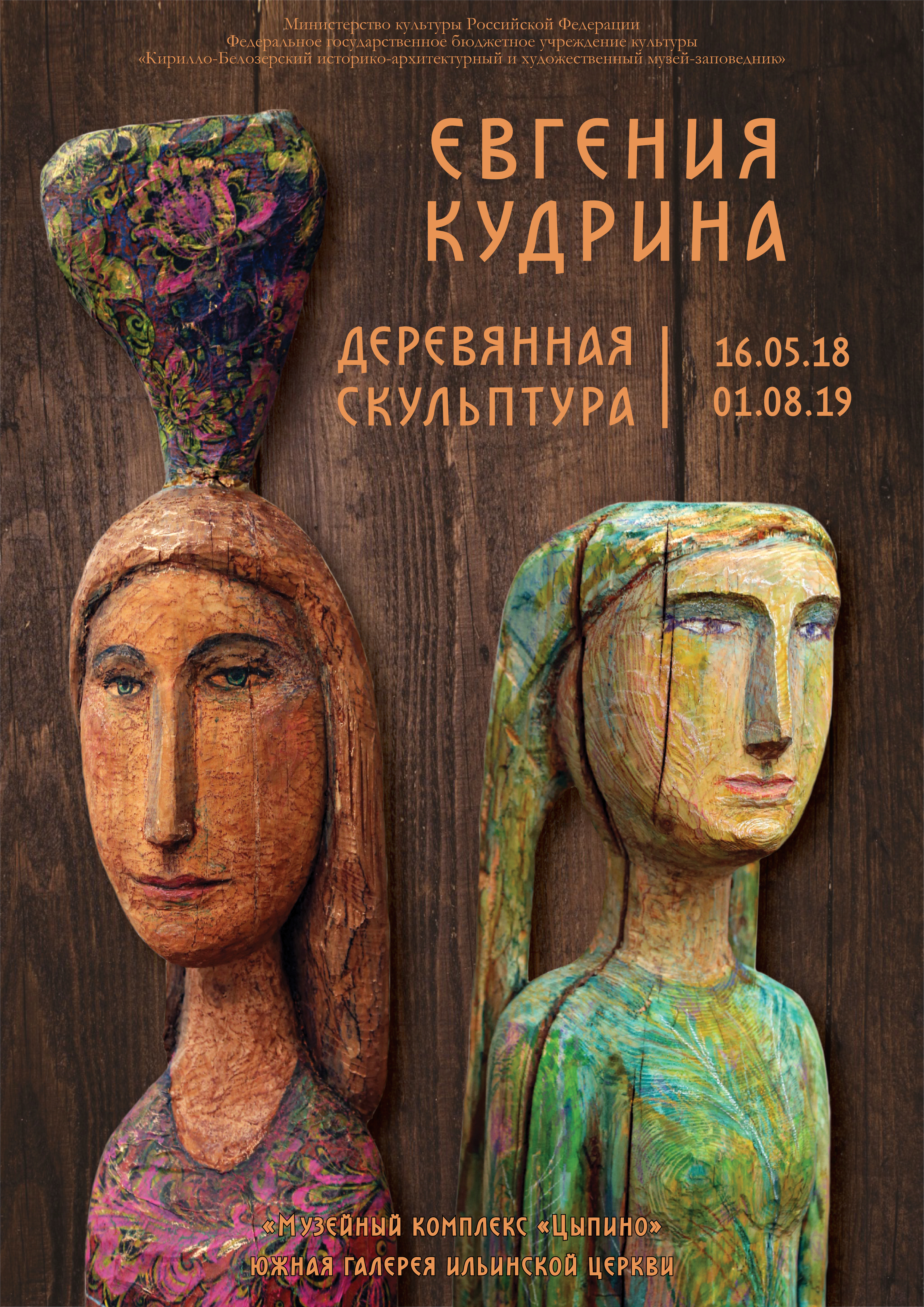 Московский скульптор Евгения Кудрина работает с деревом более 25-ти лет. В работе она использует хорошо знакомые нам всем липу, дуб, сосну, осину. Дерево - живой, теплый, говорящий материал, и автор угадывает его тайну, раскрывает его Божественную сущность, использует особенности разных древесных структур. Каждое дерево, прожившее жизнь и хранящее свою историю, в руках мастера обретает душу, становится произведением высокого искусства…