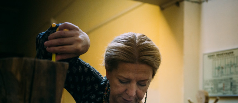 и расписные прялки… Связь здесь прямая, родовая: мама Жени Кудриной родилась в Вологодских краях, хотя потом и уехала отсюда навсегда.