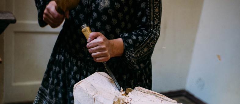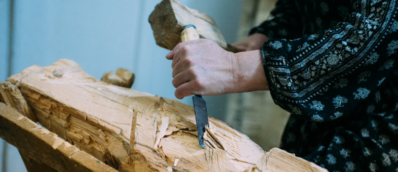 И такая работа с деревом рождает совершенно женский принцип: соприкасаться с живым материалом, не травмируя его, не делая в нем дыр и вставок, не нарушая структуру дерева.