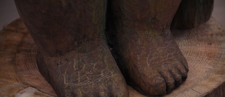 С Русским Севером Женю связывало многое. Ежегодные поездки в Ферапонтово и дальше, до Белого моря подпитывали ее творчество и давали обновление. В ее работах безусловно прослеживается связь с древними языческими традициями. Многие искусствоведы писали о том, что в ее скульптурах можно уловить отзвуки древних идолов, начиная от скифских степных изваяний и заканчивая северными обрядовыми куклами – панками. Выбор материала, самого живого и природного в скульптуре – не случаен. Этот изобразительный язык продолжает традициии Русского Севера, где все – из дерева: и резные поморские кресты и куклы, обернутые ситцем,