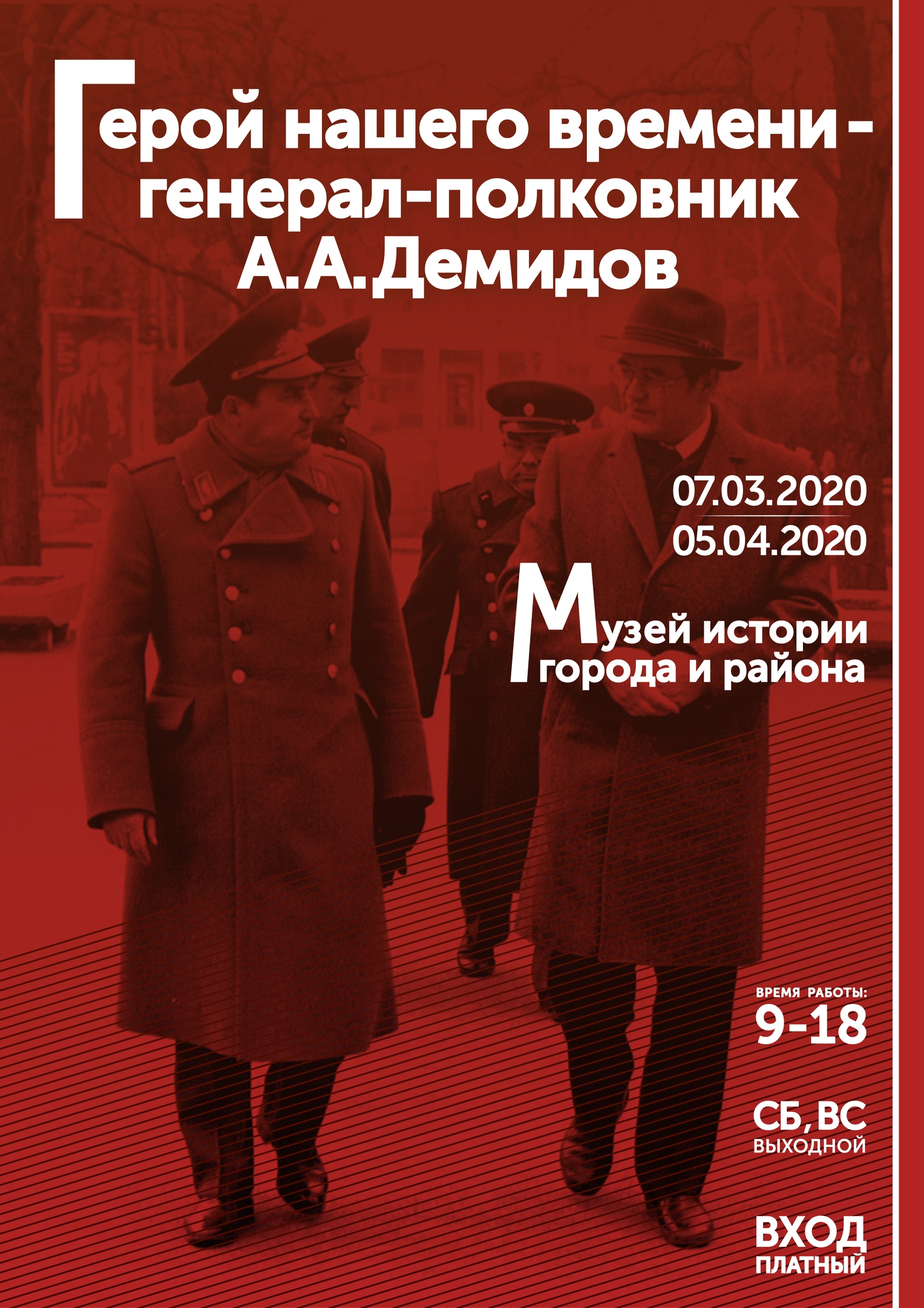 Сегодня в филиале Кирилло-Белозерского музея-заповедника – Музее истории города и района – открылась выставка «Герой нашего времени – Генерал-полковник А.А. Демидов», познакомиться с которой возможно до пятого апреля. Именно до этого дня вещи и документы советского военачальника Алексея Арсентьевича Демидова будут представлены для широкой общественности.