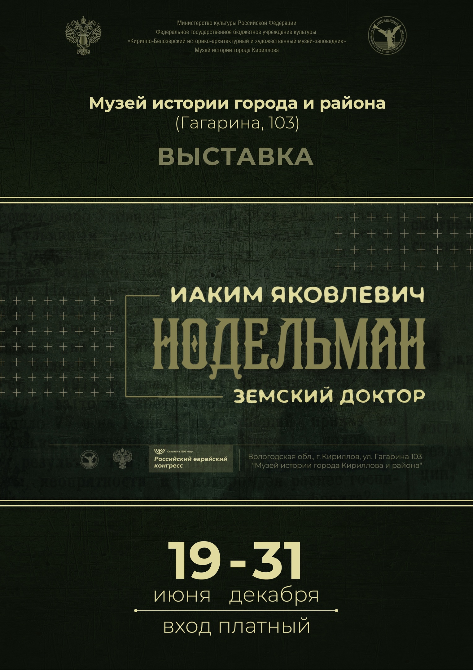 Выставка рассказывает о докторе Иоакиме Яковлевиче Нодельмане, земском враче общей практики, жившем в XIX веке в здании, где сейчас располагается музей. Она была создана благодаря победе музея в Третьем грантовом конкурсе музейных инициатив и выставочных проектов Российского еврейского конгресса. Музей закупил оборудование для проведения интерактивных мероприятий и декорирования интерьера кабинета. Были отобраны музейные экспонаты для размещения в новой экспозиции, создана интерактивная информационная система.