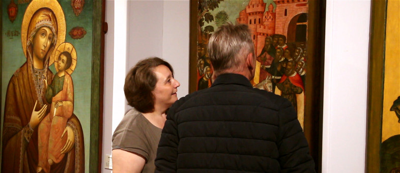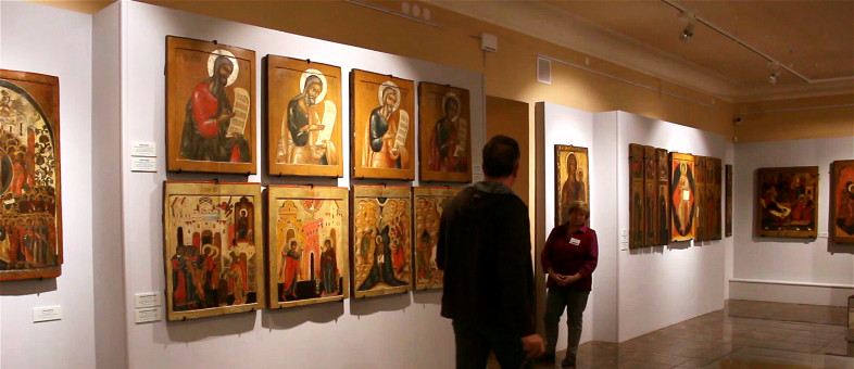 Тема иконной выставки в 2023 году - иконопись Русского Севера. Представлены 12 частных коллекционеров и около 10 музеев Архангельской и Вологодской областей. Необычайно интересны иконы XV-XVI веков, которые привезены из Каргопольского, Вологодского музеев. Крайний интерес представляет достаточно большая коллекция икон из Сольвычегодского музея и небольшие иконы, которые называются полотенца. Они написаны на холсте, загрунтованном с двух сторон, двусторонние образы, которые кладутся на амвон в храме во время праздников. Показана достаточно широко сольвычегодская и строгановская школа иконописи конца и первой половины XVII века, иконы XVIII, XIX веков. На выставке представлено около 200 памятников.