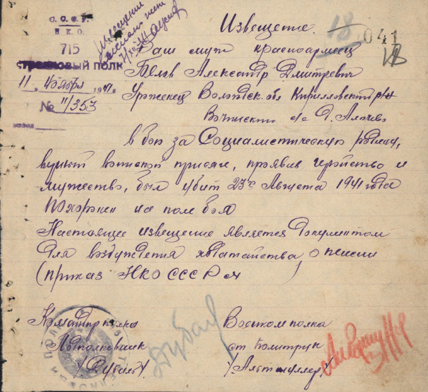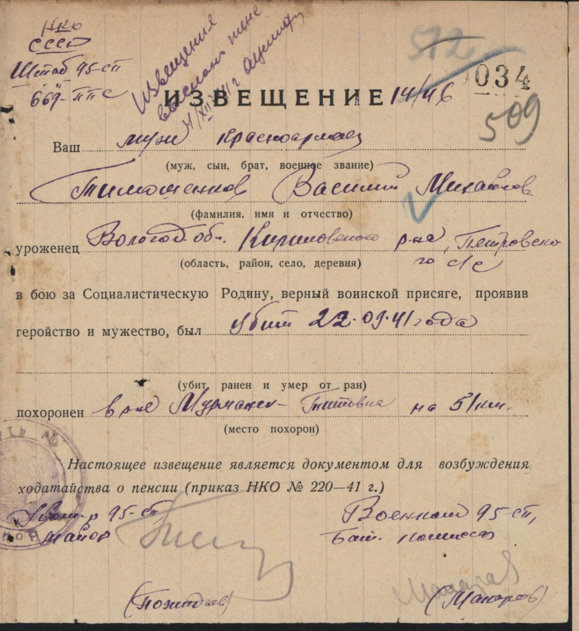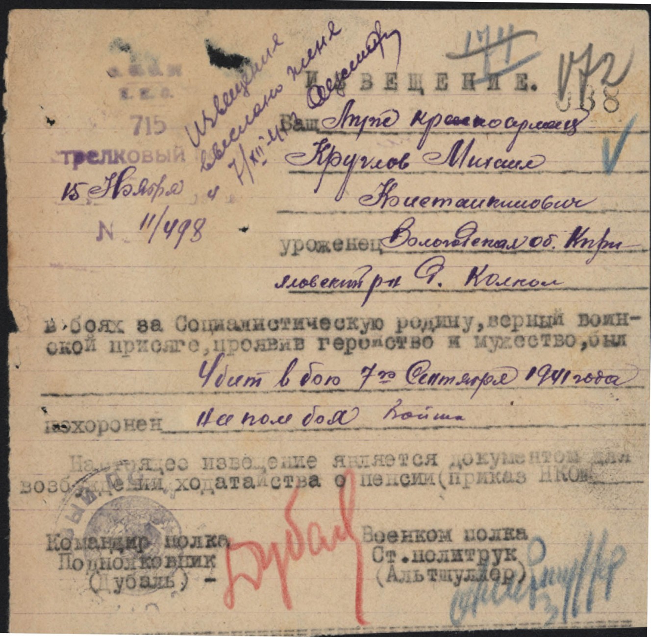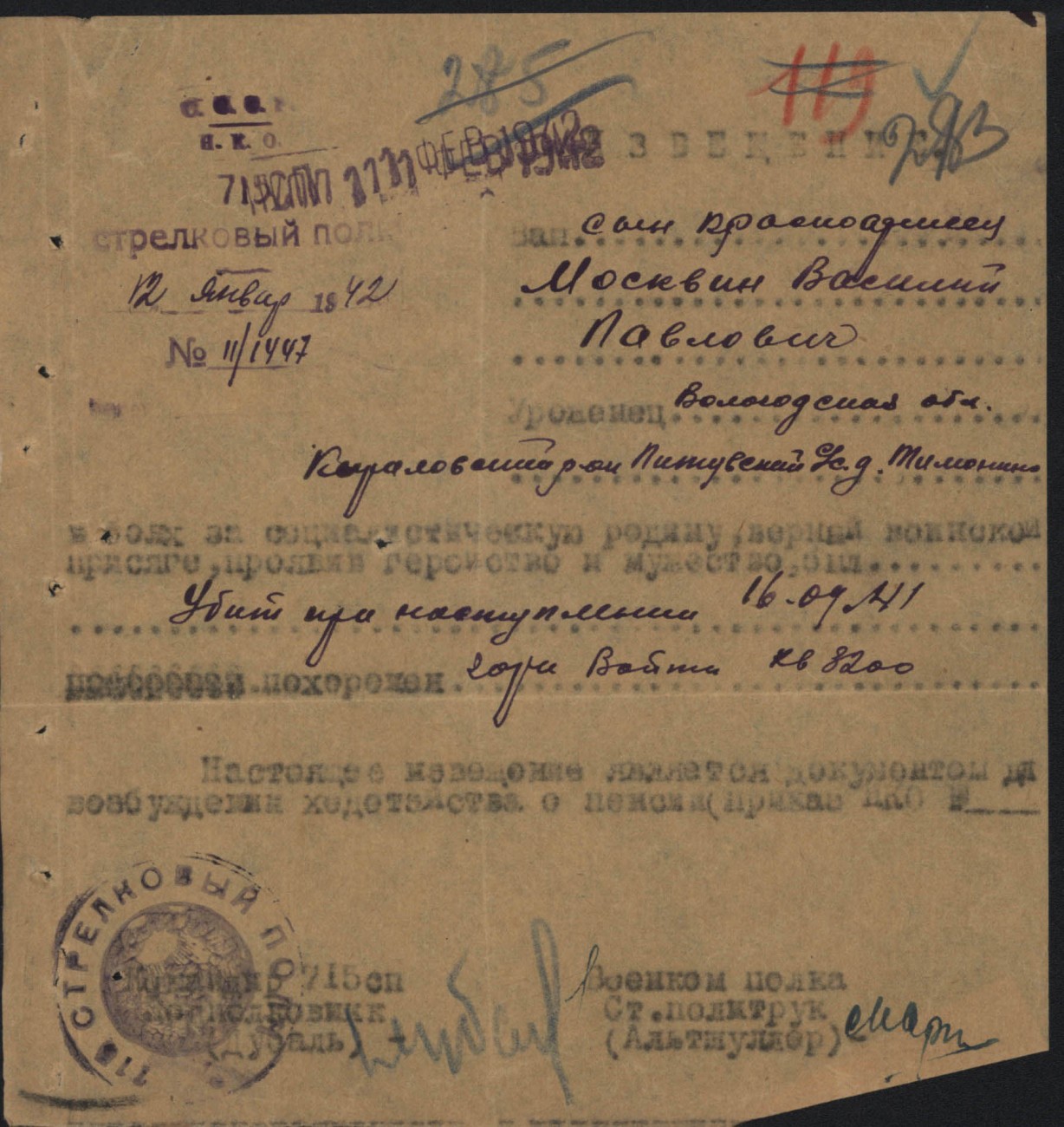 Похоронки 1941 года