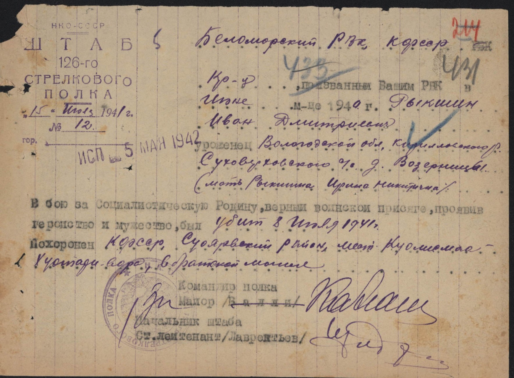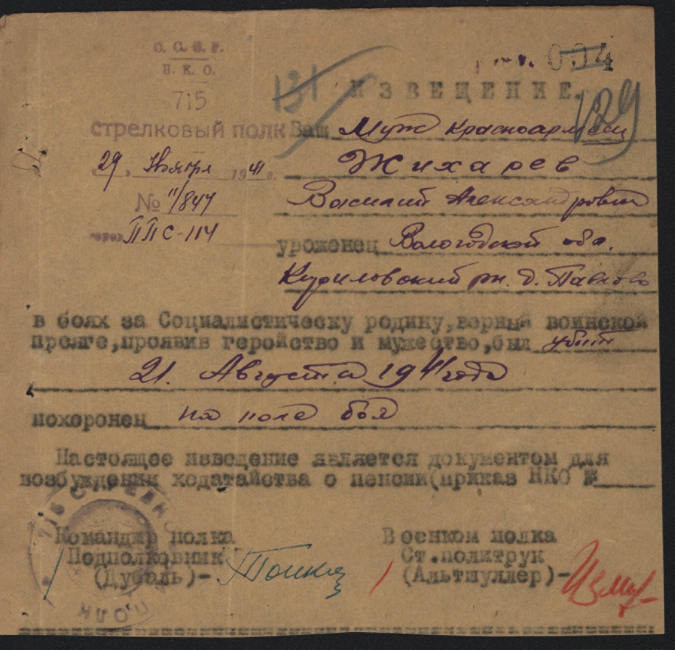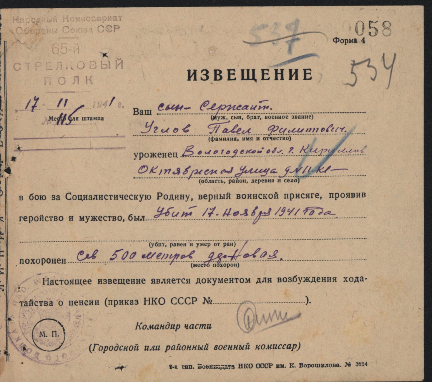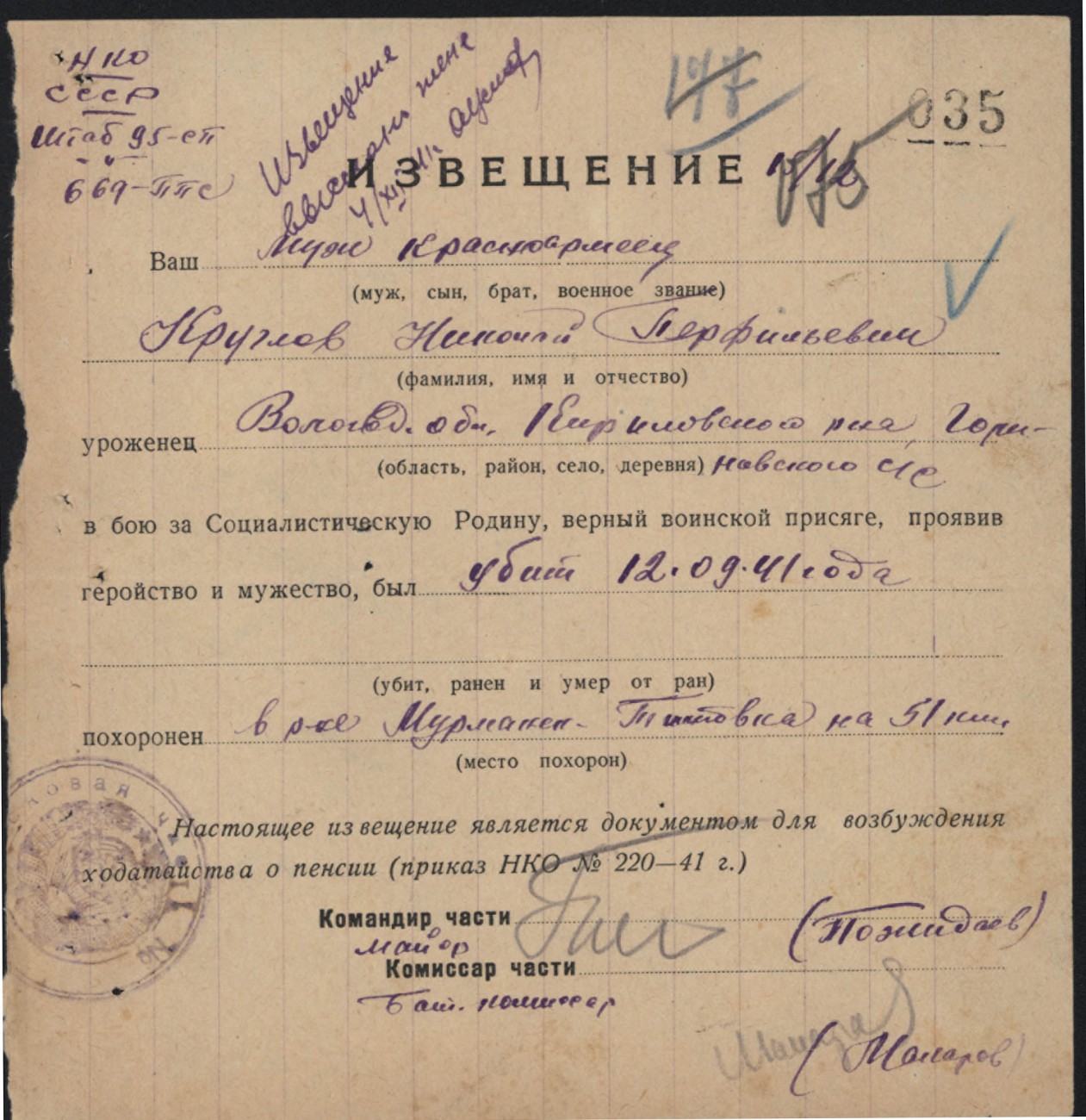 Похоронки 1941 года