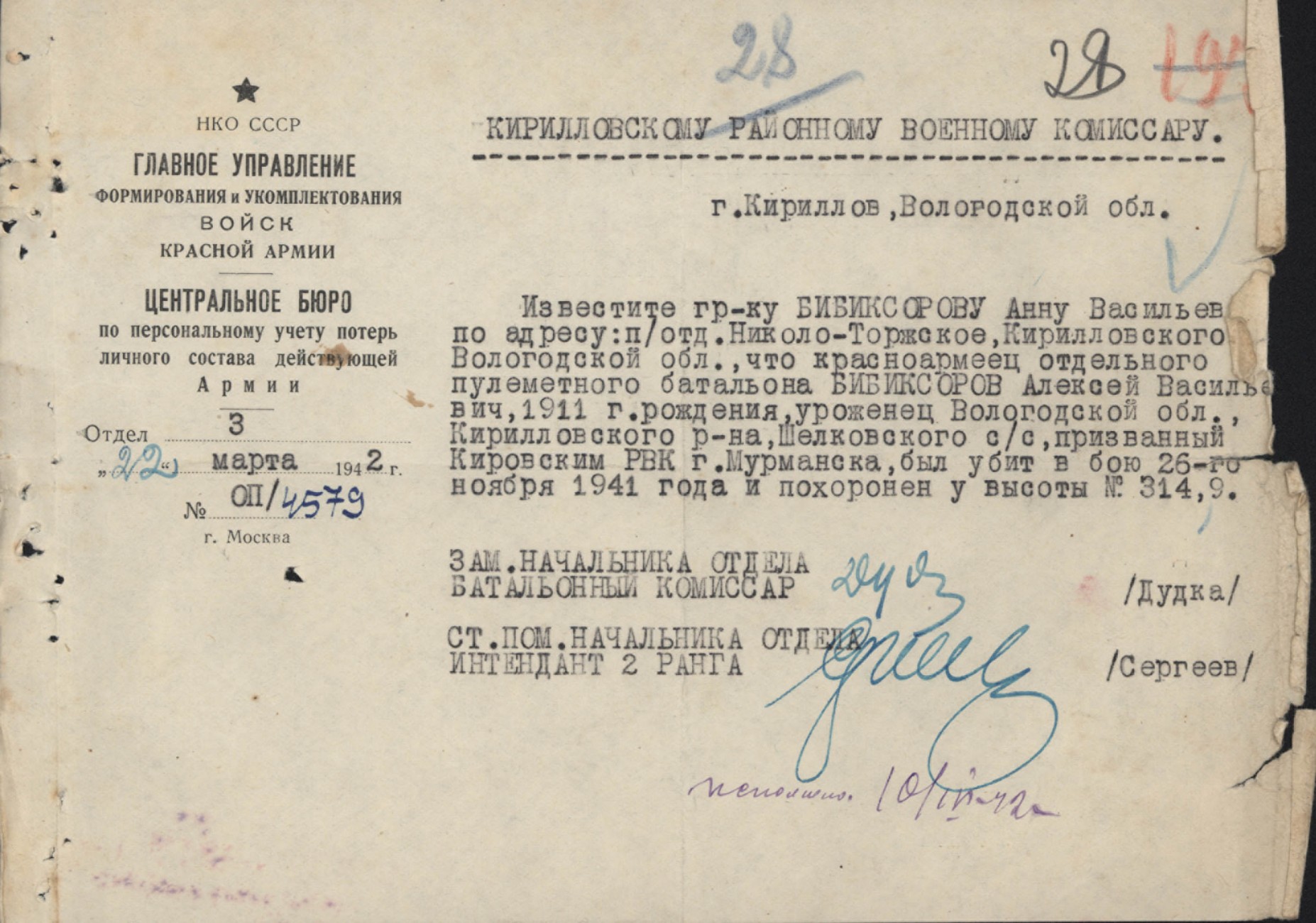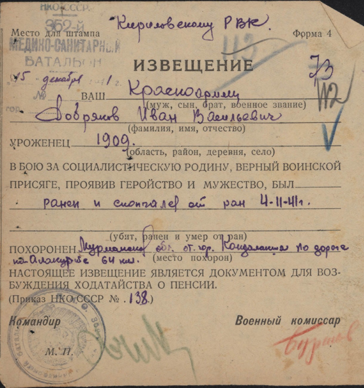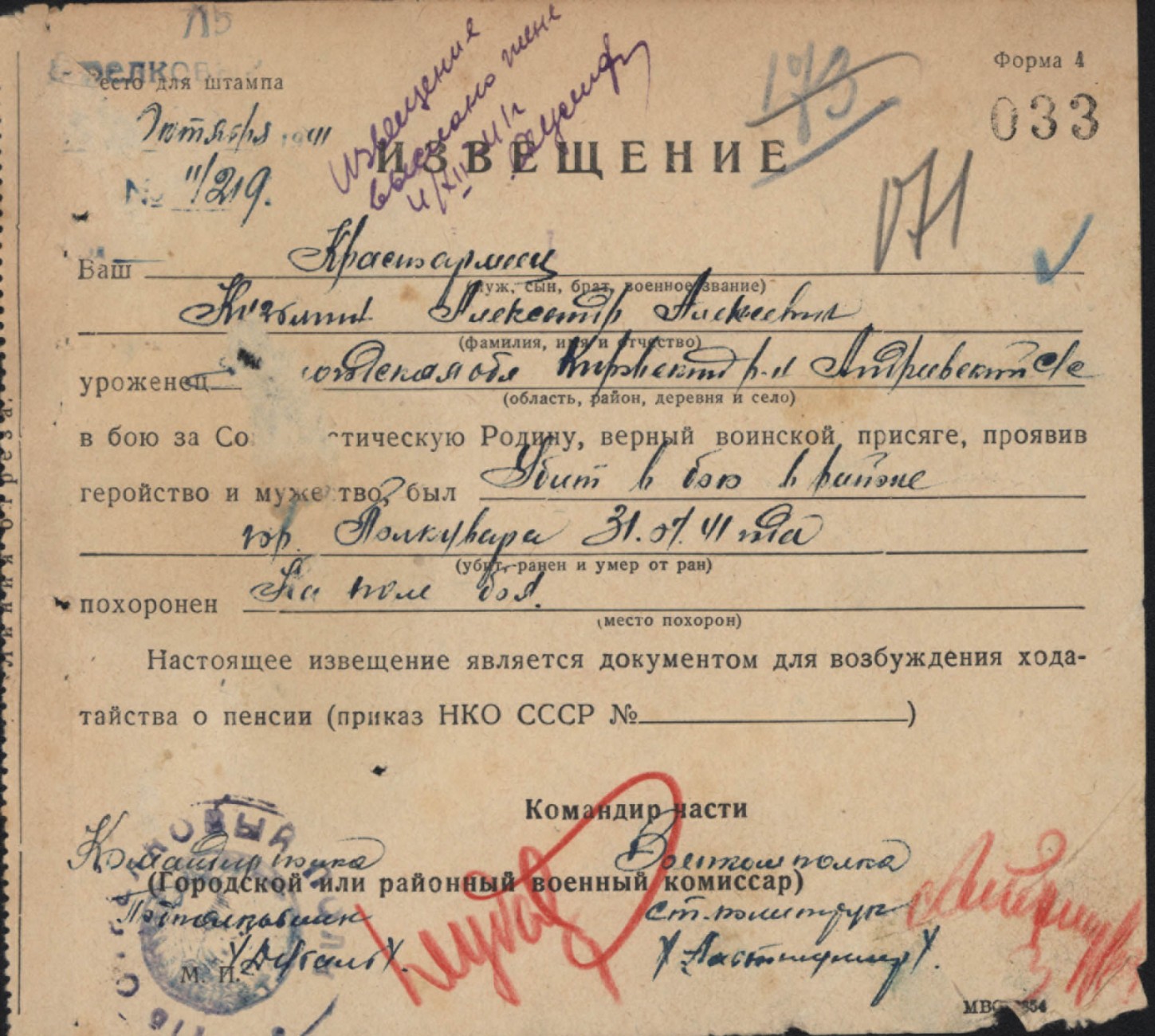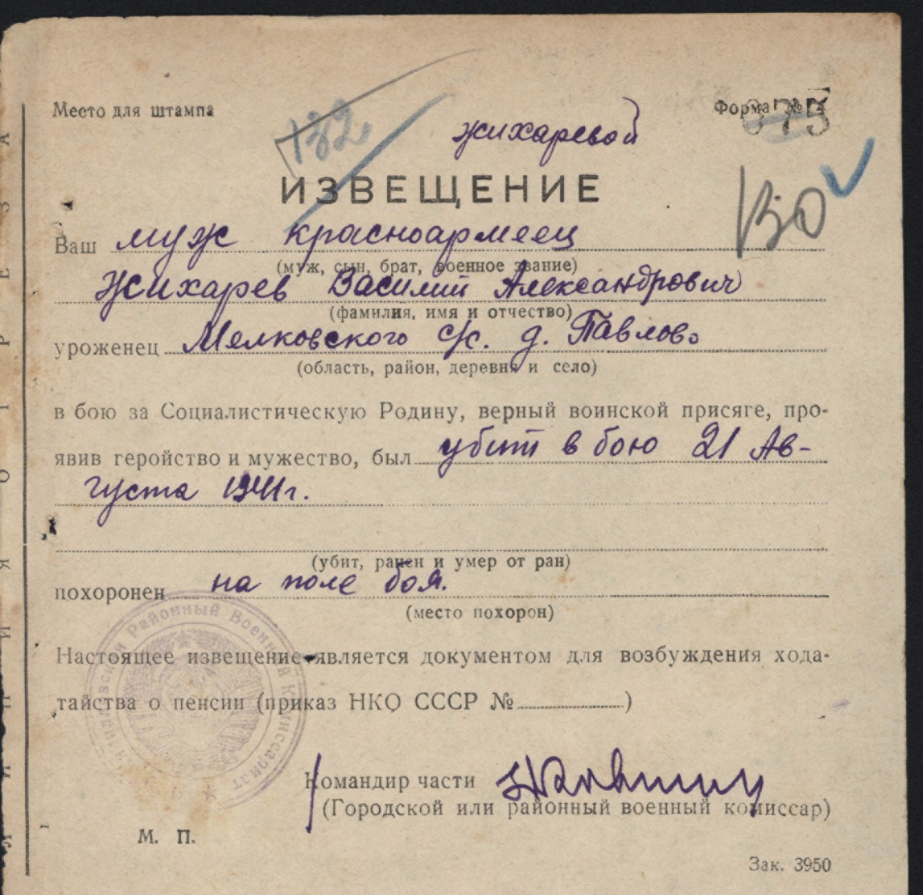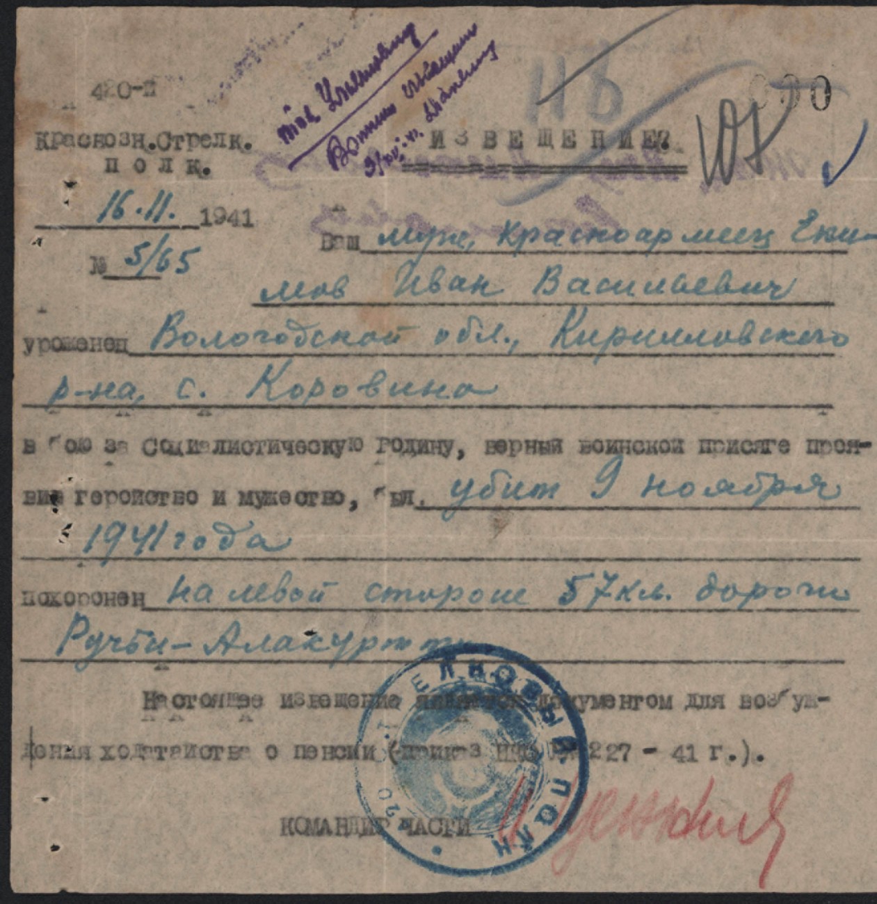 Похоронки 1941 года