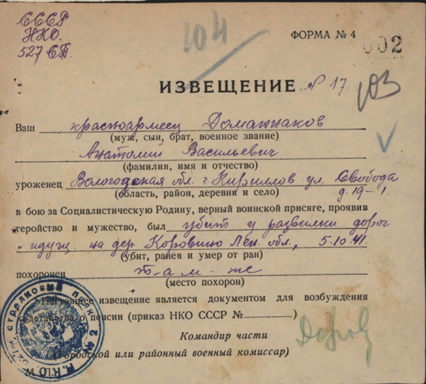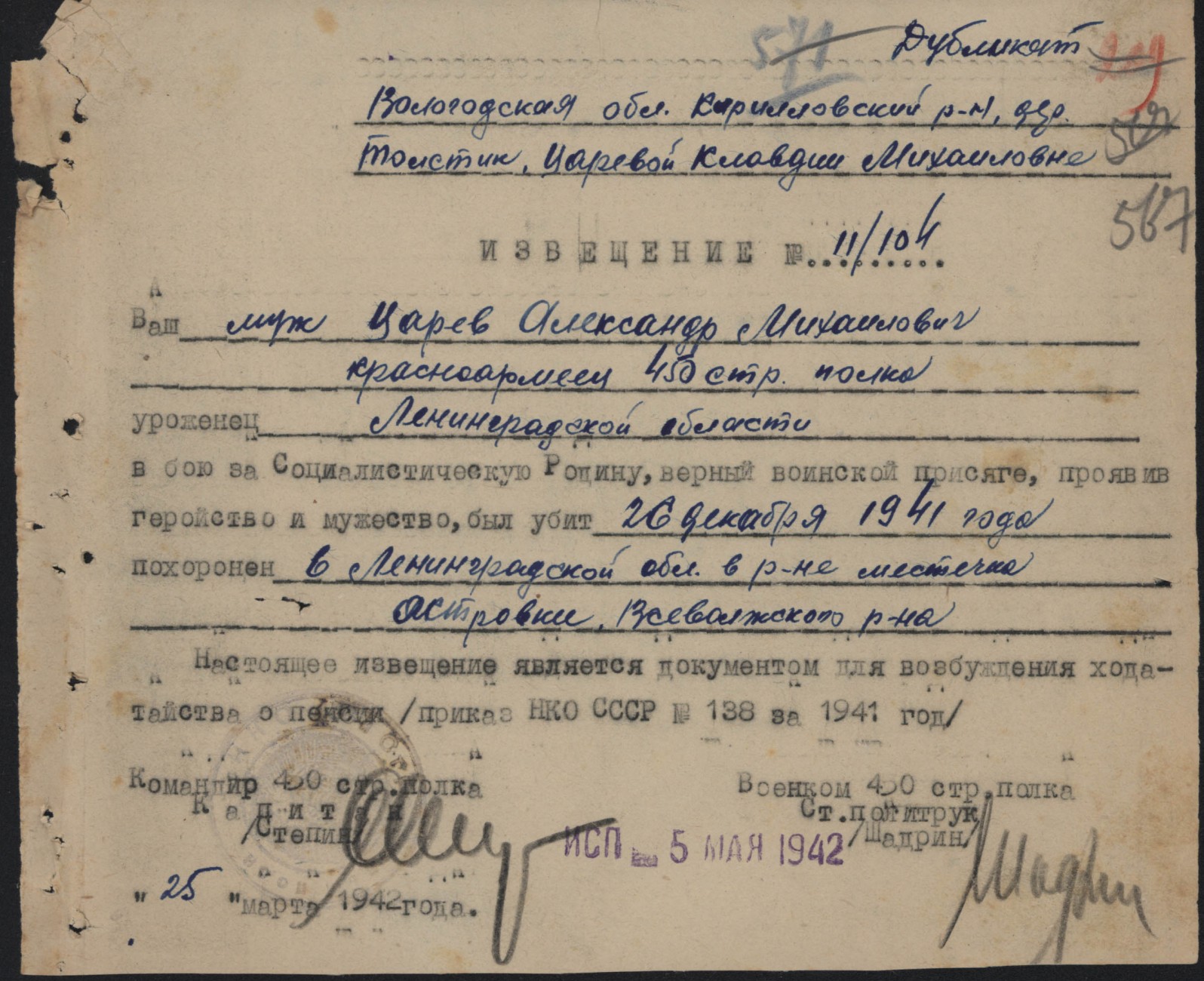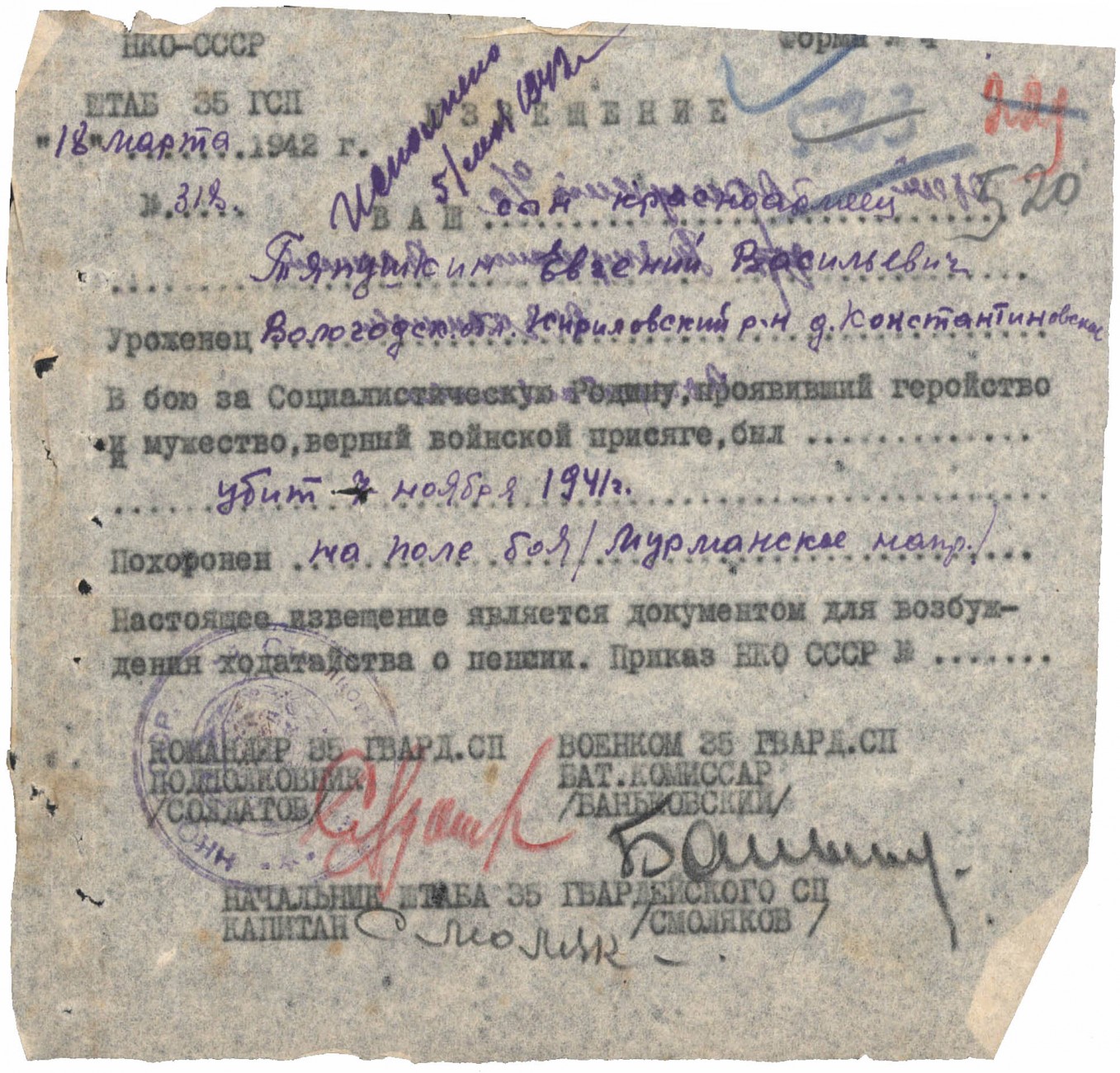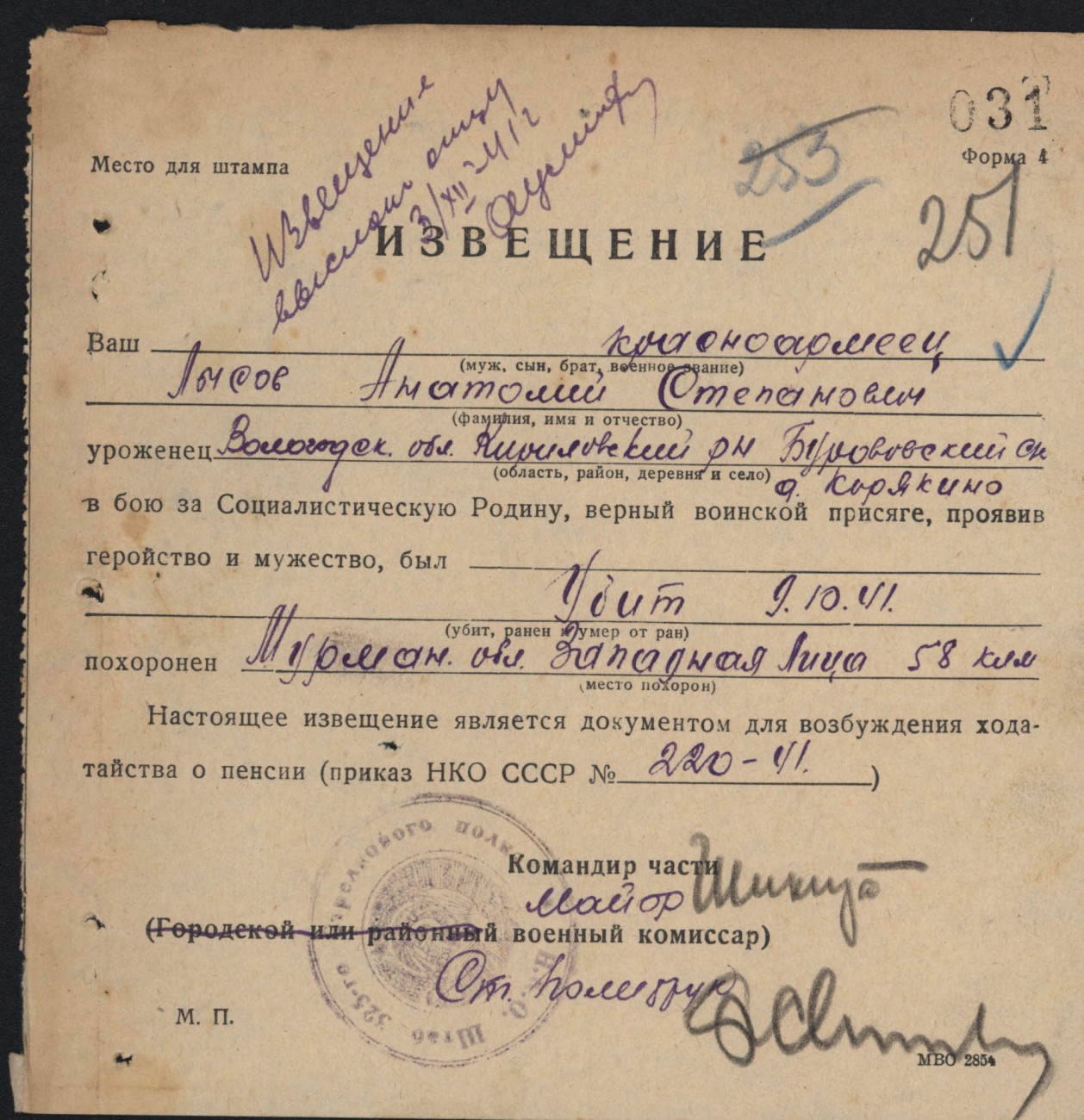Похоронки 1941 года