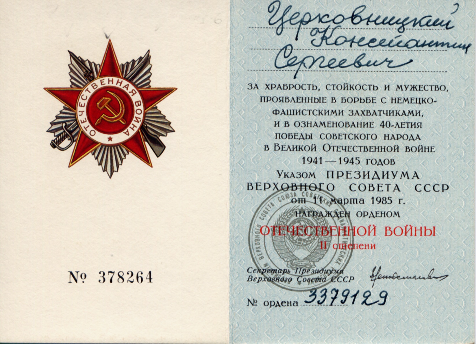 Константин Сергеевич родился 28 февраля 1923 года в селе Останино Свердловской области в семье учителей. 20 июня 1941 года окончил среднюю школу, а 23 июля Константин получил повестку в армию. Его направили в Челябинскую область в авиационную школу. Через год Константин уже был на фронте, служил механиком авиационного вооружения. День Победы Константин Сергеевич встретил в Польше, под Познанью. За свои ратные подвиги Константин Сергеевич награждён орденом Отечественной войны II степени, медалями «За оборону Сталинграда», «За взятие Берлина» «За победу над Германией в Великой Отечественной войне 1941–1945 гг.», «За победу над Японией».