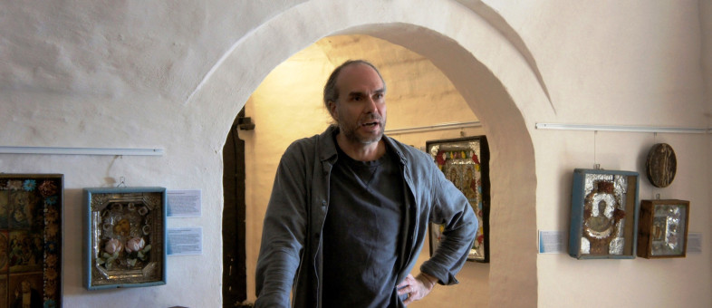 Несмотря на то, что официально религиозного искусства в Советском Союзе не существовало, прерванные революцией традиции не исчезли. В сёлах мастера-кустари создавали молельные образы тайно. Используя элементы декора XIX – начала ХХ вв. и доступные в советском селе материалы, они изготовляли сложные, богато декорированные иконы-бриколажи, в которых ярко отражалась история всей страны и художественные традиции каждого региона. Безусловно, в те времена найденные иконы массово уничтожались, а вместе с ними – и целый пласт советской религиозной культуры, который даже не был осмыслен, как историческое и художественное явление. Найти советские памятники и начать работу по их изучению решились учёные-энтузиасты из Центра визуальных исследований Средневековья и Нового времени Российского государственного гуманитарного университета, которые в ближайшее время представят уникальнейшие сохраненные иконы XIX-XX столетий в Кириллове.