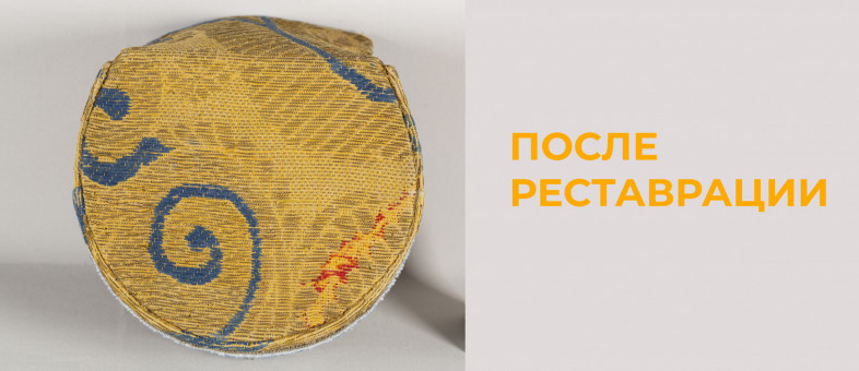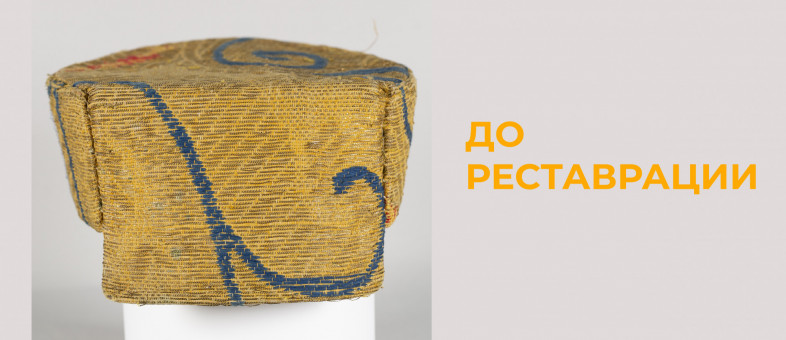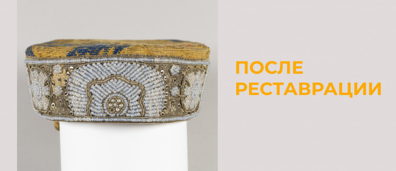 В ходе реставрации памятника ослаблены загрязнения на подкладе, выполнена водная очистка кокошника, восполнена утрата, сдублирован и укреплён разрыв на подкладе, укреплены ослабленные нити.