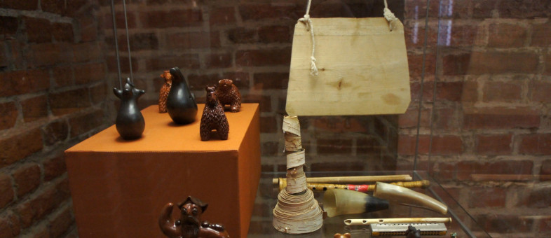 Из личной коллекции Александра Михайловича Келарева - собирателя и исполнителя северного фольклора, музыковеда - на выставке представлено 50 предметов, бытовавших в конце XIX-XX веков на территориях современных Вологодской и Архангельской областей, республики Коми и средней полосы России: гармони тальянки и хромки, балалайка, барабанка пастушья и рожки, дудочка тростниковая.