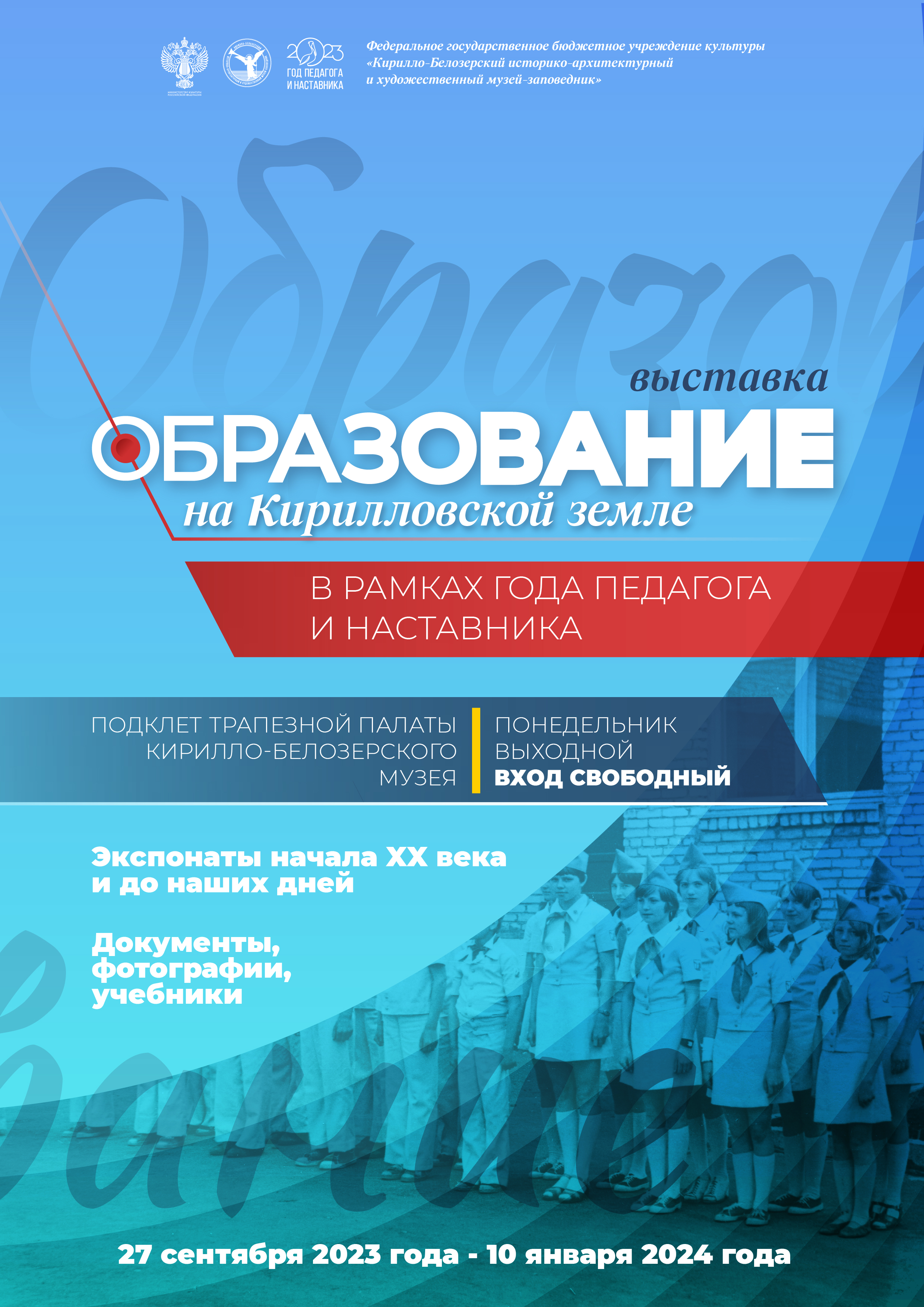 27 сентября 2023 года в Подклете паперти Трапезной палаты открылась выставка «Образование на Кирилловской земле», рассказывающая о Становлении системы народного образования, в том числе в Кирилловском районе.