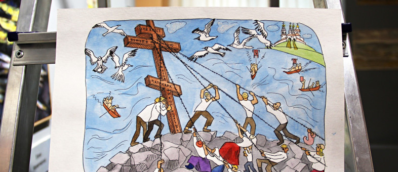 Здесь есть театральные художники, книжные графики, скульпторы, поэты слова и цвета, есть заслуженные художники и есть рабочая творческая атмосфера, в которой вспомнив старые качели хочется про них рассказать, даже если ты не заслуженный художник. Из такого живого соприкосновения и появилась ежегодная осенняя выставка, еще в 1990-ых. За эти годы она сменила несколько площадок: до 2013 года бытовала в Казенной палате в стенах Ферапонтова монастыря, в 2013-2014 – буквально на самих стенах в день Яблочного Спаса, а в 2015-2017 художники самостоятельно устраивали экспозицию в полях деревни Дъяконовская: это мероприятие со стогами-витринами безусловно хочется отразить и в выставках под крышей. Параллельно с выставкой в поле, в 2016-2017 годах осенняя выставка открывается на сентябрь в залах Народного дома в Кириллове – надеемся, это надолго.