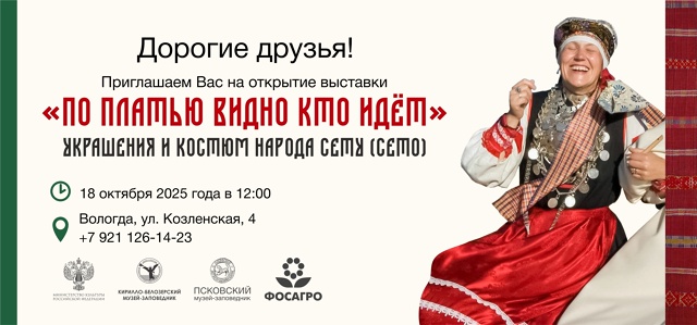 Мемориальная мастерская заслуженного художника России Татьяны Чистяковой стала местом показа выставки «По платью видно, кто идет», знакомящей посетителей музея с историей и культурой самобытного народа сету. Это совместный проект Кирилло-Белозерского и Псковского музеев-заповедников. Он реализуется в рамках федерального проекта «Семейные ценности и инфраструктура культуры» национального проекта «Семья» при поддержке Министерства культуры Российской Федерации и компании «Фосагро».