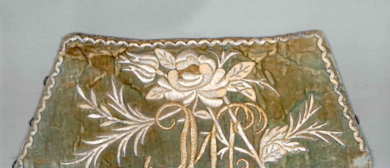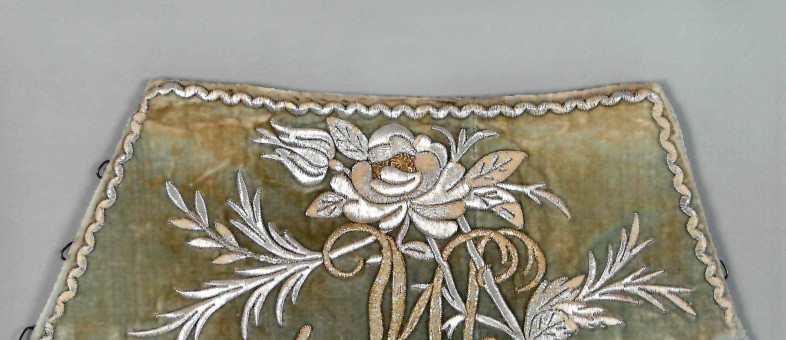 Материал: зеленый бархат, коленкор, золотые и серебряные нити