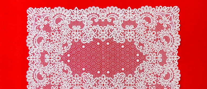 Замечательную династию художниц-кружевниц Веселовых продолжила в объединении «Снежинка» и дочь Веры Дмитриевны – Надежда Валерьевна Веселова. Дочь унаследовала дар создавать изделия массового производства – воротники, пелерины, косынки. В одной из представленной скатерти «Рябинка» варьируется любимый мотив художницы – изогнутая ветвь с цветами, бутонами, гроздями ягод. Удивительно богаты фактура и цвет кружева: на суровом фоне льна вспыхивают яркие красные пятнышки, выступают рельефные детали. Своеобразные фактурные разработки, вкрапления цветных деталей превращают её даже небольшие скромные работы в уникальные произведения.