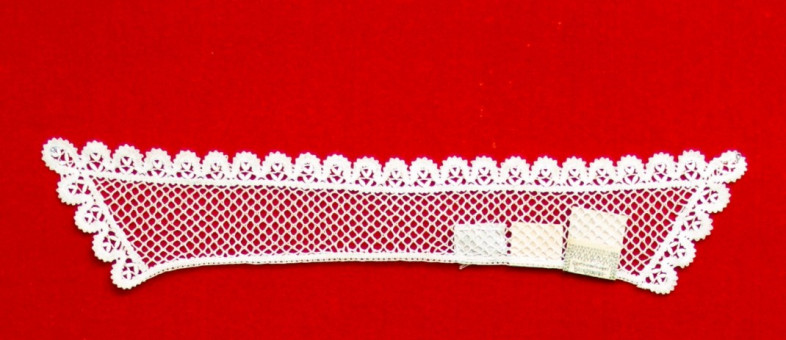 Веселова много работала над улучшением и расширением ассортимента для костюма, создавая конструктивные и практичные вещи. Её воротнички, галстуки, шарфы, косынки, накидки, различные вставки всегда отвечали духу времени и моде. На выставке представлено два воротничка, выполненные Грибцовской и Сокольской артелями по рисункам художницы в строгом, лаконичном стиле.