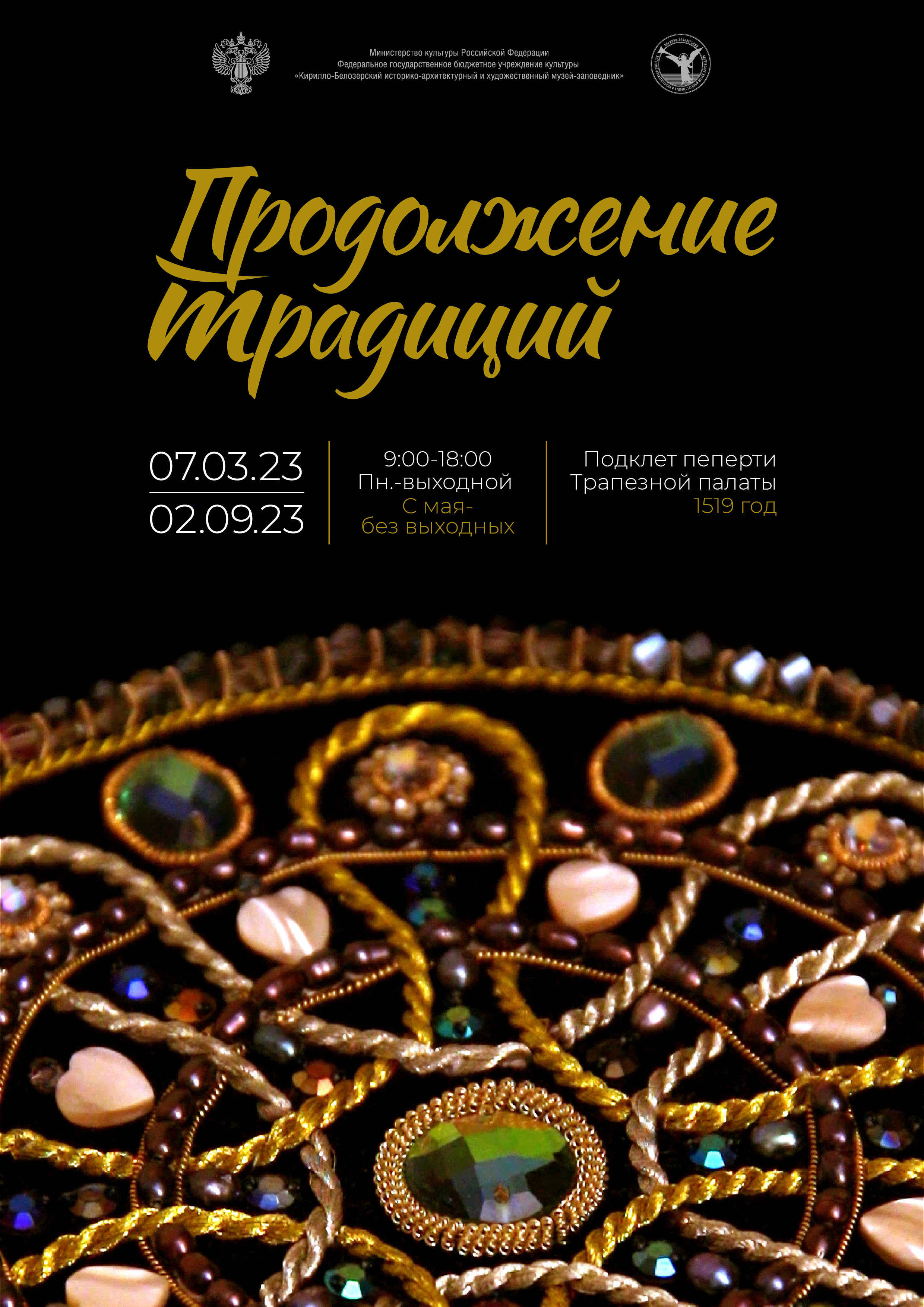 7 марта в Подклете паперти Трапезной палаты открылась выставка «Продолжение традиций», на которой представлены работы музейных специалистов (реставраторов по ткани) и модельера-художника Валентины Лисиной - обладательницы первого места конкурсов «Таланты России», «Российская неделя искусств», «Зэнт Арт».