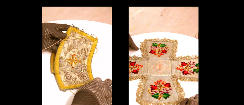 Один из двух залов подклета представляет работы музейных специалистов (реставраторов по ткани). В нём посетители могут увидеть отреставрированные церковные облачения 18 - 19 столетий. Выставка продлиться до 2 сентября 2023 года.