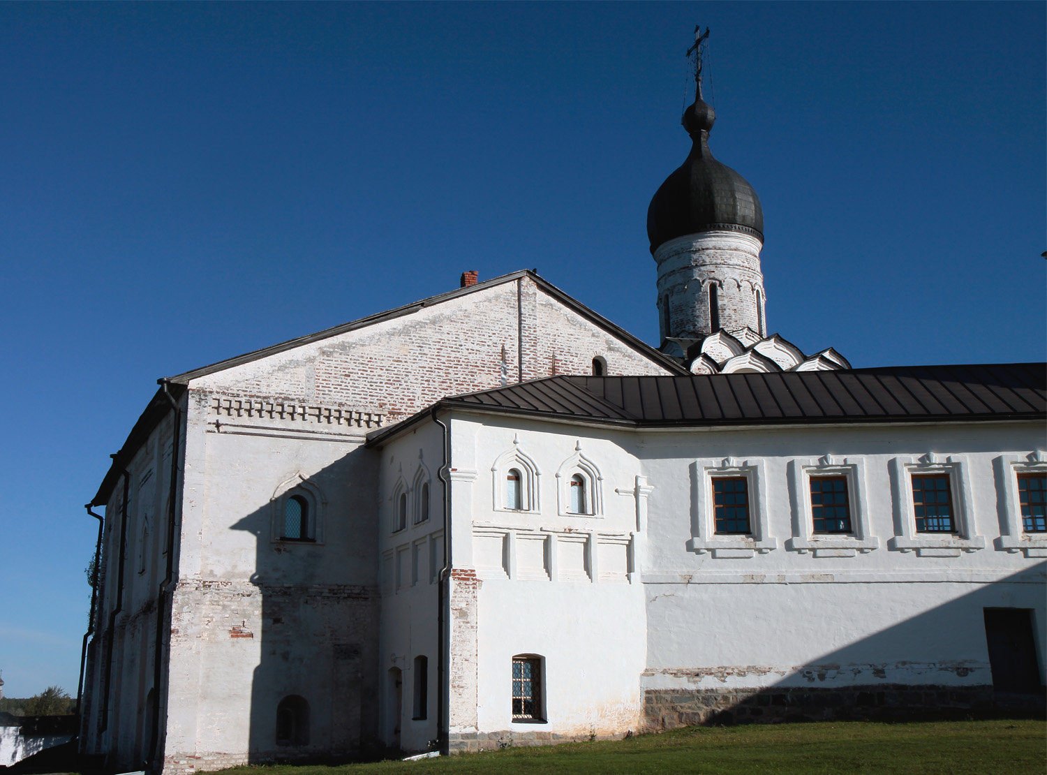 Уникальный памятник архитектуры первой трети XVI в. По предположению историков церковь с трапезной построена на вклад великого князя Василия III в ознаменование рождения вымоленного в Кириллове и Ферапонтове монастырях наследника будущего царя Ивана IV.
