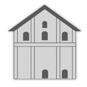 Архитектура этой двухэтажной постройки под двускатной кровлей проста и монументальна – массивные стены, небольшие оконные проемы лишены обрамлений. Оба этажа завершены цилиндрическими сводами, под сводом первого устроен «мост бренечат» – полати с дверью, выходящей на внутристенную лестницу. В завершении ее в стене устроена глубокая ниша-тайник. В западной стене второго этажа, над внутристенной лестницей, размещен чулан с маленьким окошком и тайником.