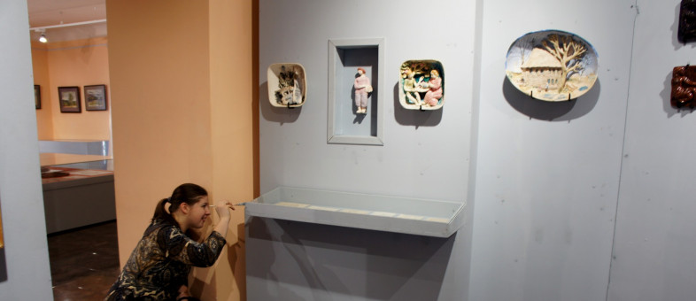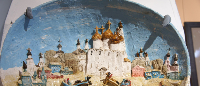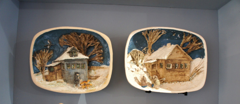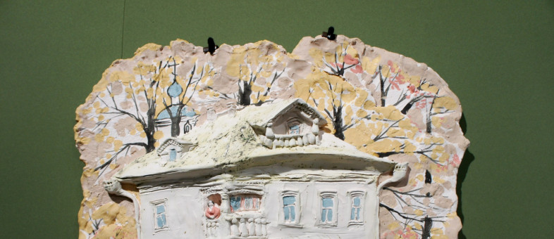 На ней вы увидите совершенно необычные, удивительные произведения, сделанные из глины, шамота, фаянса. При работе с этими материалами художники применяют самую разнообразную технику – роспись, обварку, декорирование солями и глазурями, чёрное лощение, восстановительный обжиг. В вечном материале – глине – Татьяна Чистякова оставила нам неповторимый образ северных храмов, поразительные по красоте северные пейзажи и камерные, задушевные панно, изображающие уходящие от нас, уголки старинной Вологды с её деревянными особняками и резными палисадами.