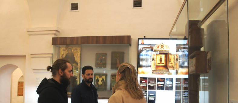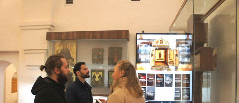 Ведущих программы «Святыни России» в Кириллове познакомили с Успенским собором, третьей каменной постройкой на Русском Севере, где почти полностью сохранился уникальный иконостас XV века. Побывали они и на Колокольне XVIII века, с которой открывается панорамный вид на окрестности монастыря, города и – гладь Сиверского озера.