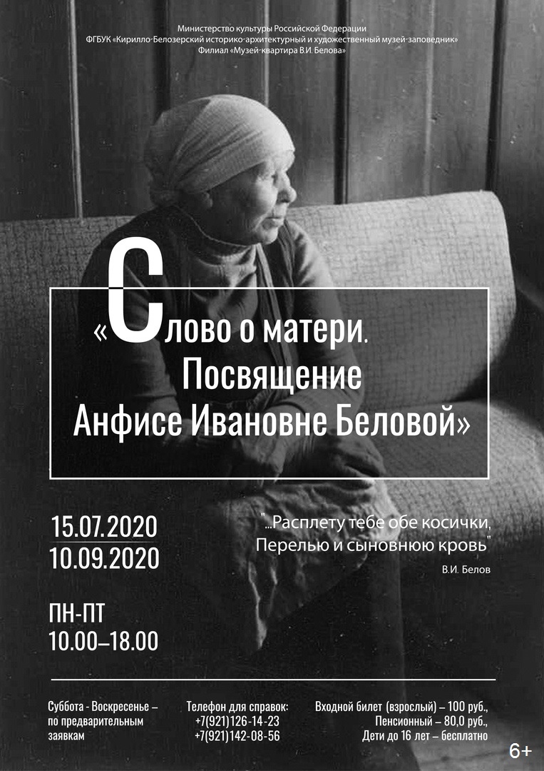 Слово о матери вологодского писателя услышат посетители Музея-квартиры Василия Белова! 12 августа 2020