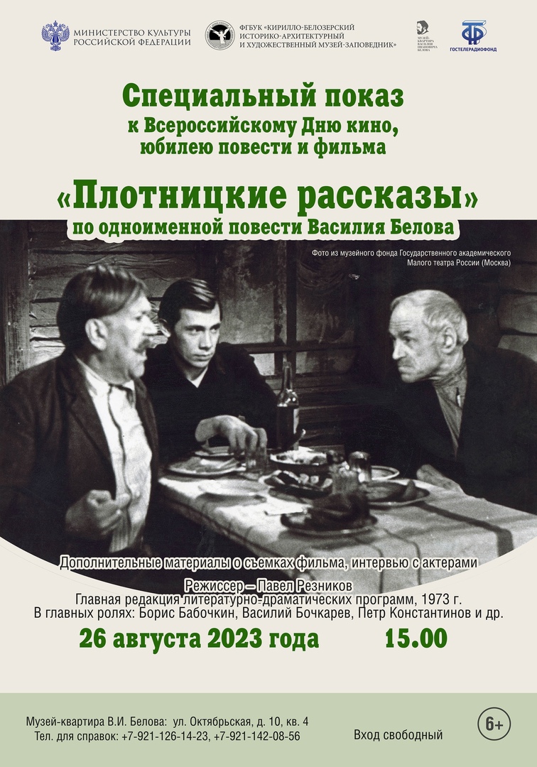 День российского кино Кирилло-Белозерский музей-заповедник отметит в Музее-квартире Василия Белова! 24 августа 2023