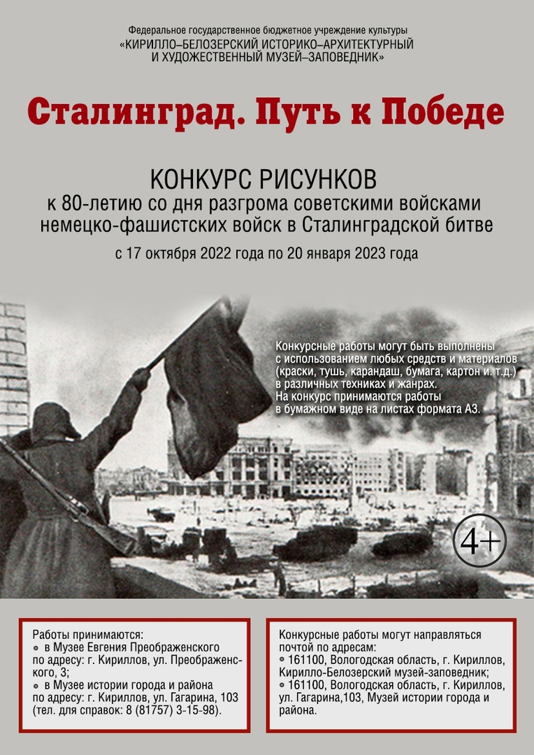Кирилло-Белозерский музей-заповедник проводит конкурс рисунков "СТАЛИНГРАД. ПУТЬ К ПОБЕДЕ"! 17 октября 2022