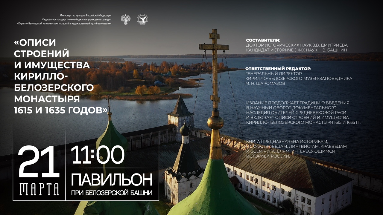 Премьерная презентация книги «Описи строений и имущества Кирилло-Белозерского монастыря 1615 и 1635 годов» состоялась в Кириллове 21 марта 2022