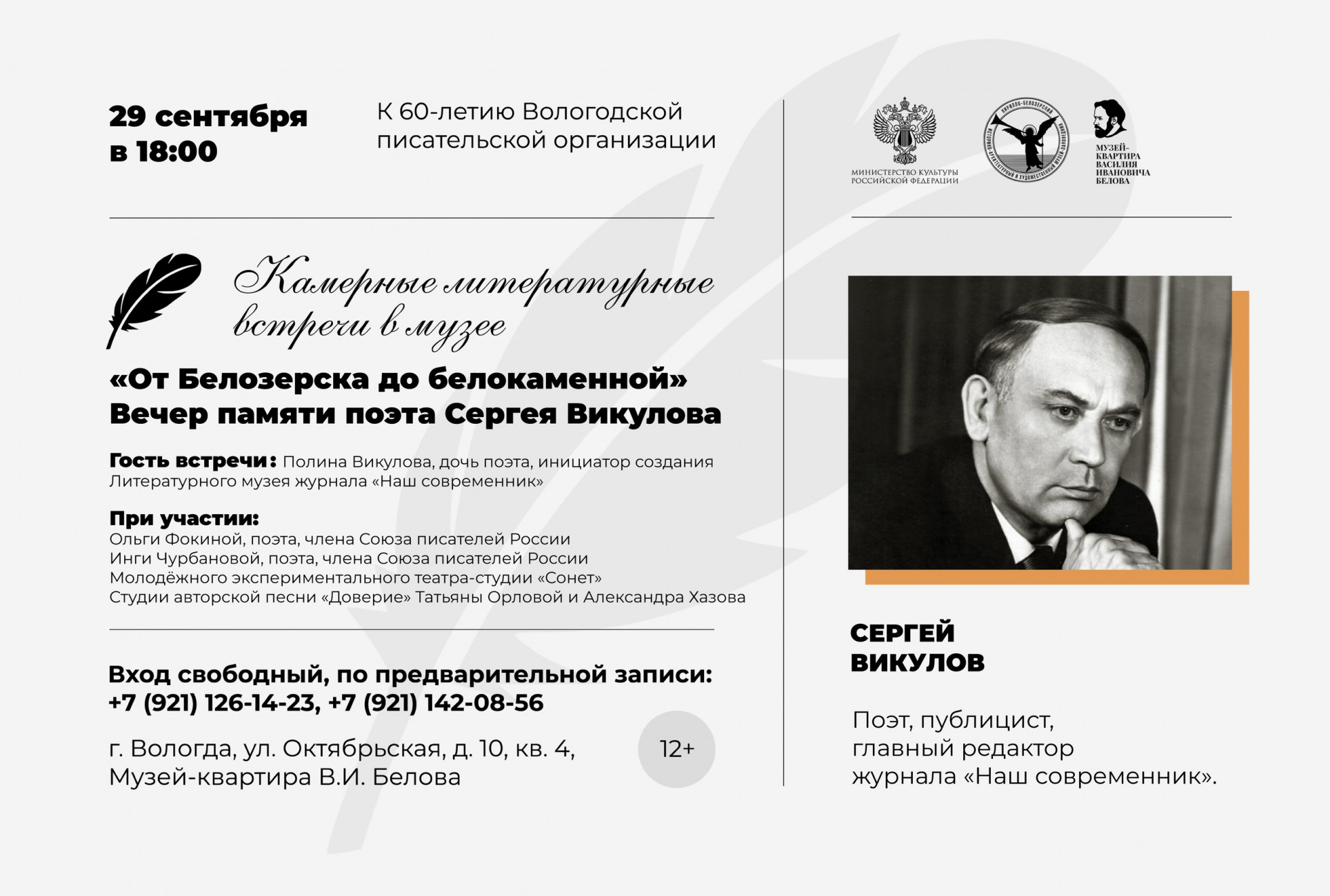 Музей-квартира В.И. Белова приглашает на встречу с наследницей вологодского писателя Сергея Викулова! 23 сентября 2021