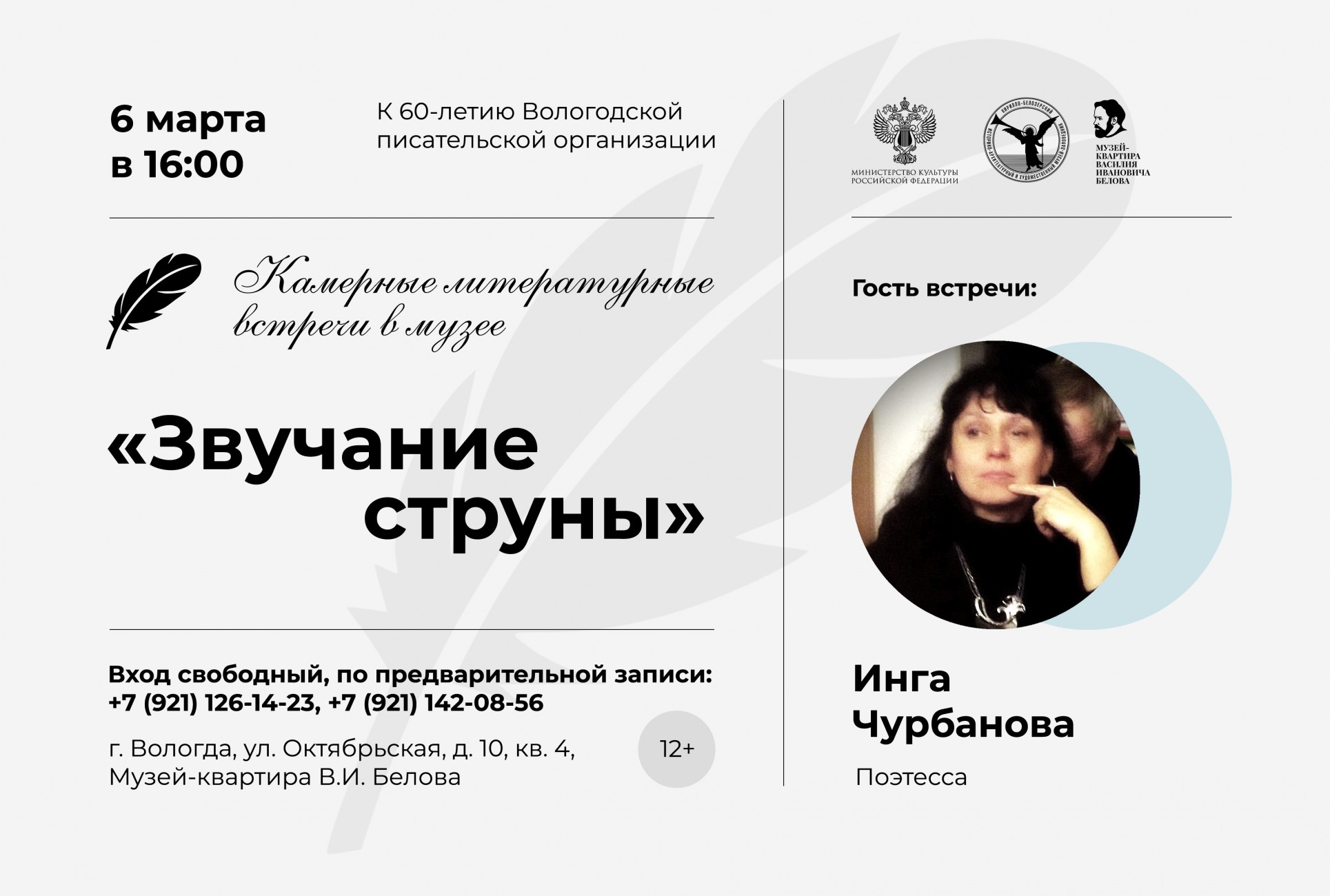 Встреча с вологодской поэтессой Ингой Чурбановой пройдёт в Музее-квартире Василия Белова!