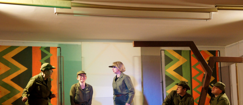 Артисты рассказали: «Это выездной спектакль со специальными декорациями для небольшой сцены. В нашем театре сцена занимает площадь 9 на 12 метров».