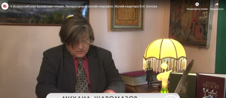 Литературным онлайн-марафоном «#ЧитаемБелова» в филиале Кирилло-Белозерского музея-заповедника – Музее-квартире Василия Ивановича Белова – сегодня, 22 октября, открыли V Всероссийские Беловские чтения «Белов. Вологда. Россия», которые будут проходить в областной столице до 24 октября.