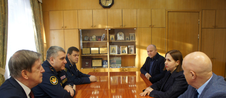Начальник Вологодского института права и экономики ФСИН России Сергей Жемулин о памятниках и проектах Кирилло-Белозерского музея-заповедника знает не понаслышке. Неоднократно он принимал участие в мероприятиях федерального музея-заповедника, бывал на экскурсиях, высоко оценил деятельность по сохранению культурного наследия страны. На встрече с генеральным директором музея Юлией Веретновой генерал-майор внутренней службы Сергей Жемулин выразил готовность познакомить курсантов института с Музеем-квартирой В.И. Белова и Мастерской Татьяны Чистяковой.