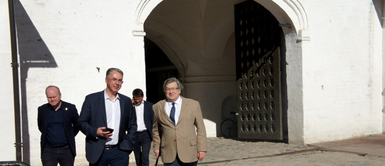 Официальных гостей в Кириллове встретили генеральный директор Кирилло-Белозерского музея-заповедника Михаил Шаромазов и глава Кирилловского округа Андрей Тюляндин.