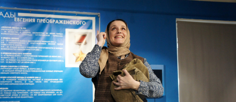 В зале, посвящённом военной биографии Героя Советского Союза Евгения Николаевича Преображенского, актриса Вологодского ордена «Знак Почёта» Государственного драматического театра Надежда Галанцева за час инсценировки показала радость войны и горечь Победы для Настёны, молодой девушки, которая так отчаянно ждала своего мужа с фронта, но дождалась намного раньше окончания войны. Дезертирства возлюбленного не одобрили бы ни родные, ни чужие, и, скрываясь ото всех, в одну из ночей молодые зачали ребенка. Монодрама завершается кончиной Настёны – не найдя другого выхода, героиня отплывает далеко от берега и бросается в воду.