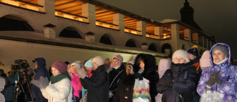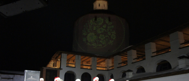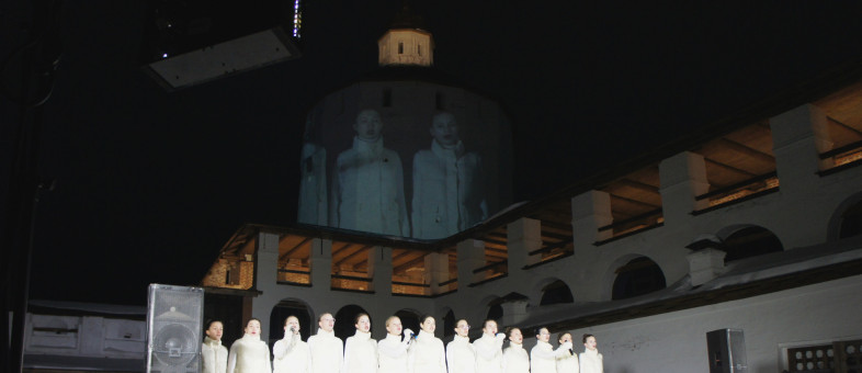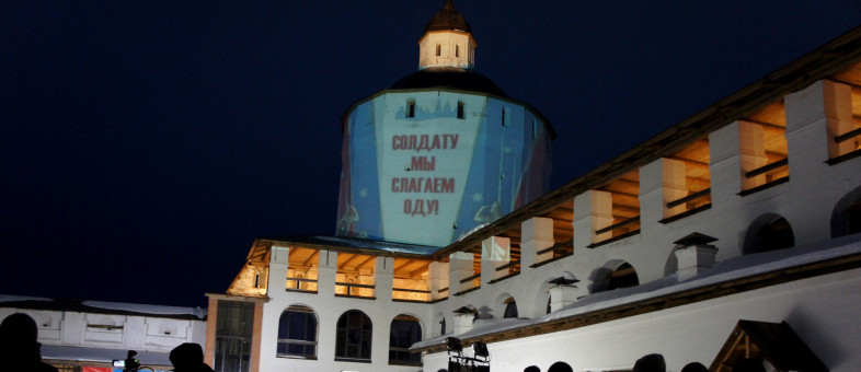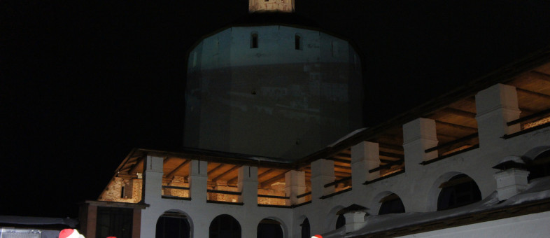 Ансамбль крупнейшего православного монастыря Европы сегодня светился огнями – масштабно и ярко День защитника Отечества 23 февраля отмечали в Кирилло-Белозерском музее-заповеднике. Галереи крепостных стен XVII века встречали зрителей новой подсветкой, а главным экраном творческого вечера служила Белозерская башня!